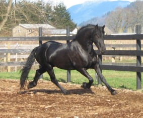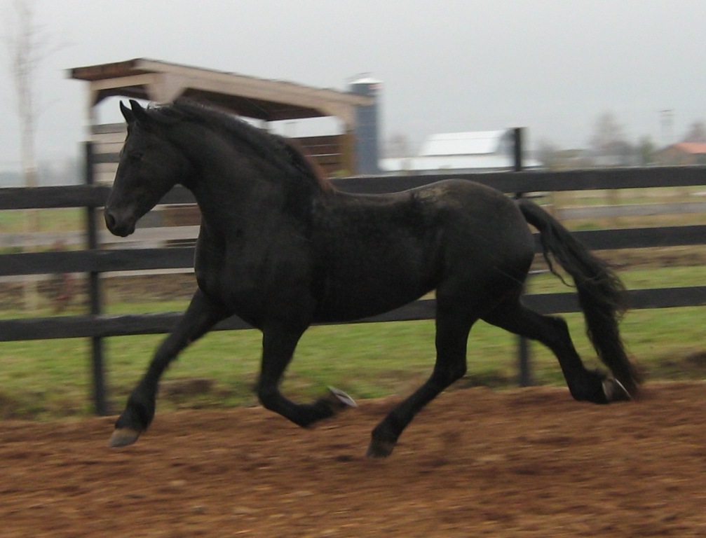 Liskje was sold in 2008, to our wonderful trainer Lynn. In 2012, however, she is coming back to Mythic Friesians on a breeding lease. We are very excited about the opportunity to breed this mare again! We think she will love having some time out on 100+ acres in the beautiful prairie sunshine. Thank you Lynn for this amazing opportunity!