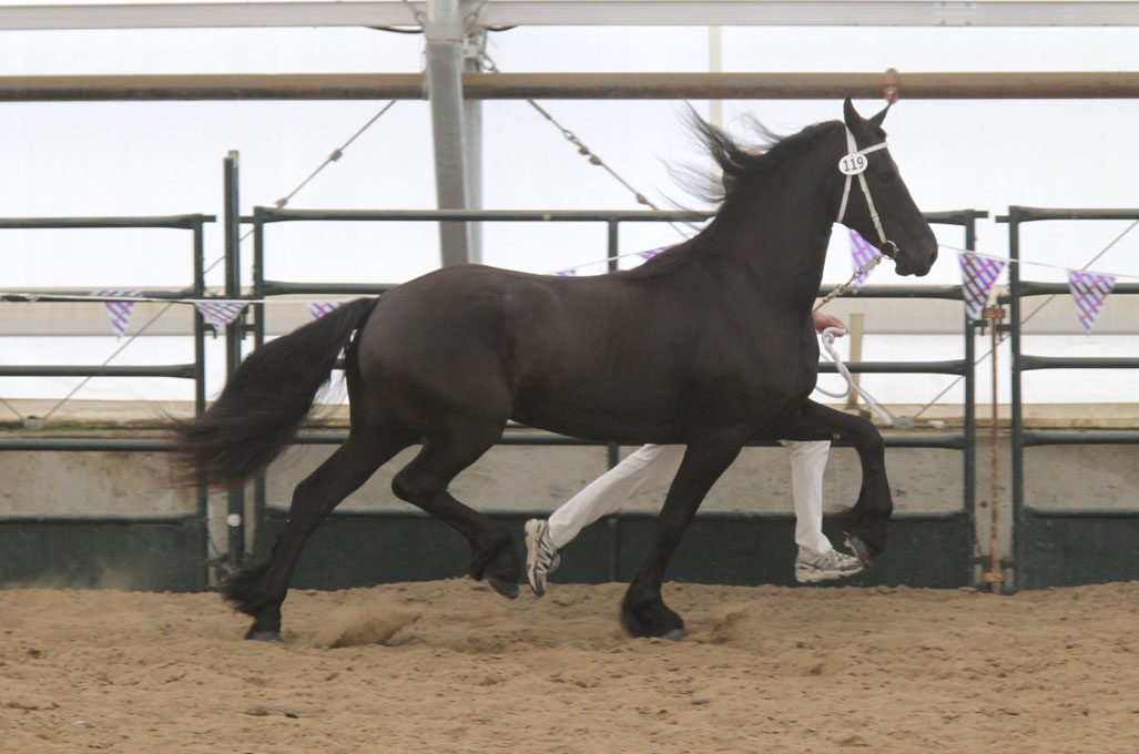 In 2010, we re-presented Vogue at the keuring in Olds, Alberta. Improving the standing of a Friesian is always a difficult proposition, so we were a bit hesitant about re-presenting her in a year where we had had so little opportunity to work her due to the weather. However, we decided to take her, and presented her in the 4+ Repeat Mares for Star category. Vogue was placed first in her class and awarded a second premium star! We were absolutely thrilled.